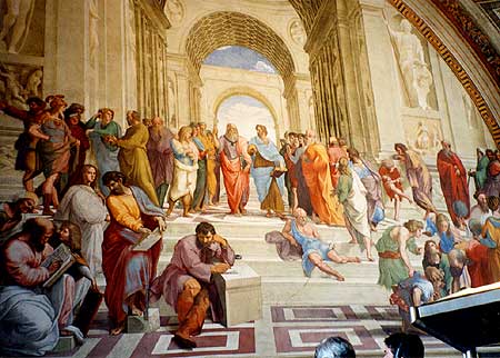 すべて歴代の教皇がプライベートに集めたものだという。 ミケランジェロのシスティナ礼拝堂を含む、24の美術館と博物館からなっていて、見学が許されている部屋だけでも、1400もある。 世界で1.2を争う内容と数を誇り、 見学者も世界中から後をたたない。 もちろん見学も1日では無理で、 できるなら、1週間ぐらい贅沢にゆっくりとまわってみたい、と思うくらい。 個人では入場するのにも、かなりの待ち時間が予想されたので、 朝7時には並んで開館をまつことにした。 それにしても、これだけの絵や彫刻を一堂に集めてしまう、教皇とは。 当時 どのくらいの強大な権力をもっていたのだろうか。 多分今の私たちには想像もつかないほどなのだと、思いをめぐらす。 が、歴史的には、これらの絵を集めるための資金源として、 教皇は免罪符を乱発し、それが教会の腐敗や退廃をひきおこし、 後の宗教改革へとつながっていたのだから、歴史はおもしろい。 さあ、中へ。良く見てないと見落としてしまいそうなのが、 入口の上の彫像。向かって右がラッファエロ、左がミケランジェロ、 この美術館を代表する2人だ。 ジュゼッペ・モーモがデザインした螺旋階段を登り、美術館へと入っていく。 中でも有名なのが、 古代ギリシァ・ローマ時代の彫刻を集めた「ピオ・クレメンティーノ美術館」 シクトゥス4世が開いた古書を収蔵する「ヴァチカン図書館」 壁面に古代の地図のフレスコ画が並ぶ「地図のギャラリー」 中世以降の絵画を年代順に見れる「ピナコテーカ」(絵画館) また、「ラッファエロの間」では、一度は何かで見たことのある有名な絵とも出会える。 全てを紹介するのはとても無理なので、 今回は下の4つのなかで、是非見ておきたいものを紹介します。 |
